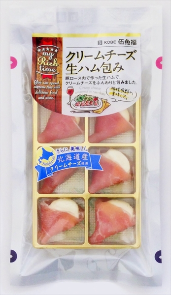 豚ロース肉をじっくり熟成させ、まろやかに仕上げた生ハムで、北海道産クリームチーズをふんわりと包みました。