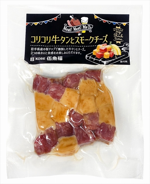 牛タンを、4種のスパイスを独自に煮出した特製の調味液に漬けこみをして熟成した後に、角切りにカットしスモークしました。