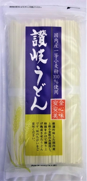 国内産小麦一等粉を使用し、熟成を重ねて延ばす讃岐の伝統的製法で作った風味豊かでコシの強いうどんです。