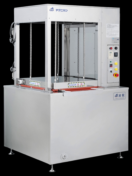 小規模店舗向けのコンパクト液体凍結機。設置面積は約50cm四方、電源は1相100Vであるため非常に人気の高い機種。