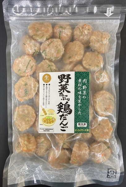 野菜をたっぷり(配合割合27%)使用した鶏だんご。生冷凍IQF商品で、使い道いろいろで便利な鶏だんご。
