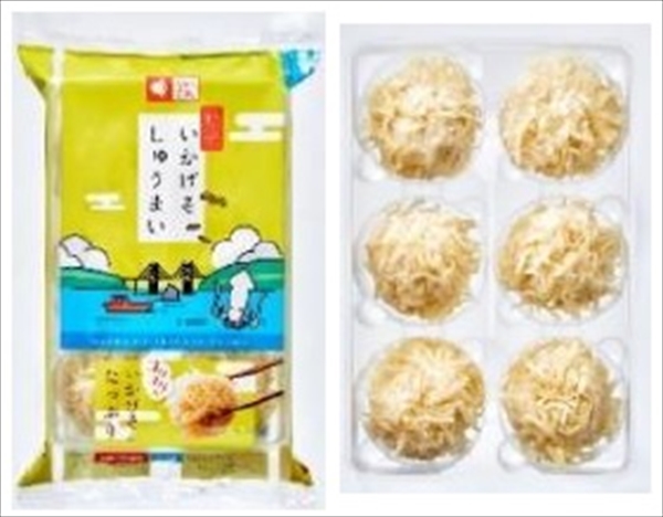いかのゲソをふんだんに使い、ゲソの旨みとコリコリとした食感がたまらないいかげそしゅうまいです。