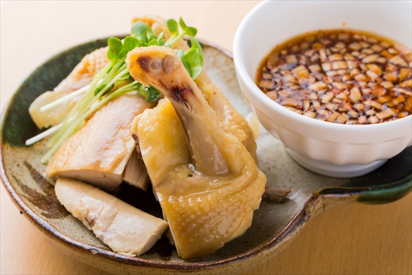 旨味たっぷりの親鳥に、米黒酢と醤油、刻み玉ねぎで味付けした特製ダレをつけて食べる、さっぱりした味わいが特長の鳥料理です。