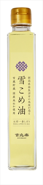 雪室に貯蔵した玄米の米ぬかを精米後24時間以内に圧搾したこめ油。雑味がなく抗酸化成分が豊富で体に優しい逸品です。