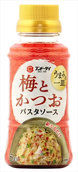 梅酢をベースに、かつお節などのだしを効かせたノンオイルタイプの和風パスタソースです。