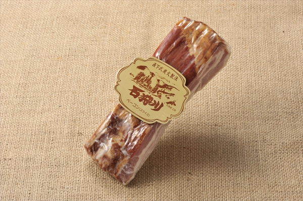 豚バラ肉を味付けし、トンデンファームこだわりの「直下式炭火製法」で燻煙・乾燥しました。1枚物をブロックカットしました。