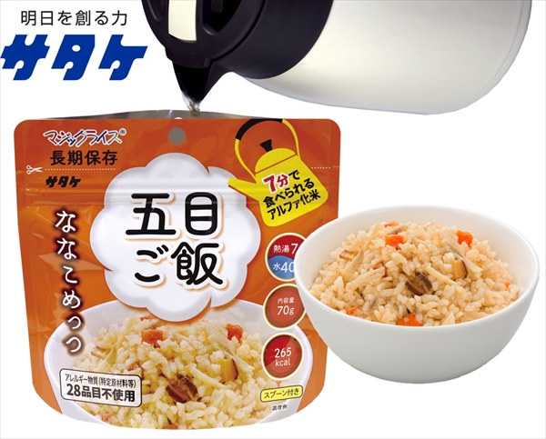 お湯か水で作れるアルファ化米・パスタを製造しています。新時代のアルファ化米「ななこめっつ」はお湯7分調理・7年保存可能で、保存食の枠を超えてインスタント食品の選択肢を広げます。保存食コーナー設置やローリングストックの最適解をご提案します。