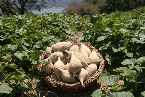 愛媛県新居浜市の沖合に浮かぶ、人口約100人の小さな島、大島。農家含む島民減少の中、稀少な七福芋を絶やさないよう生産している。
